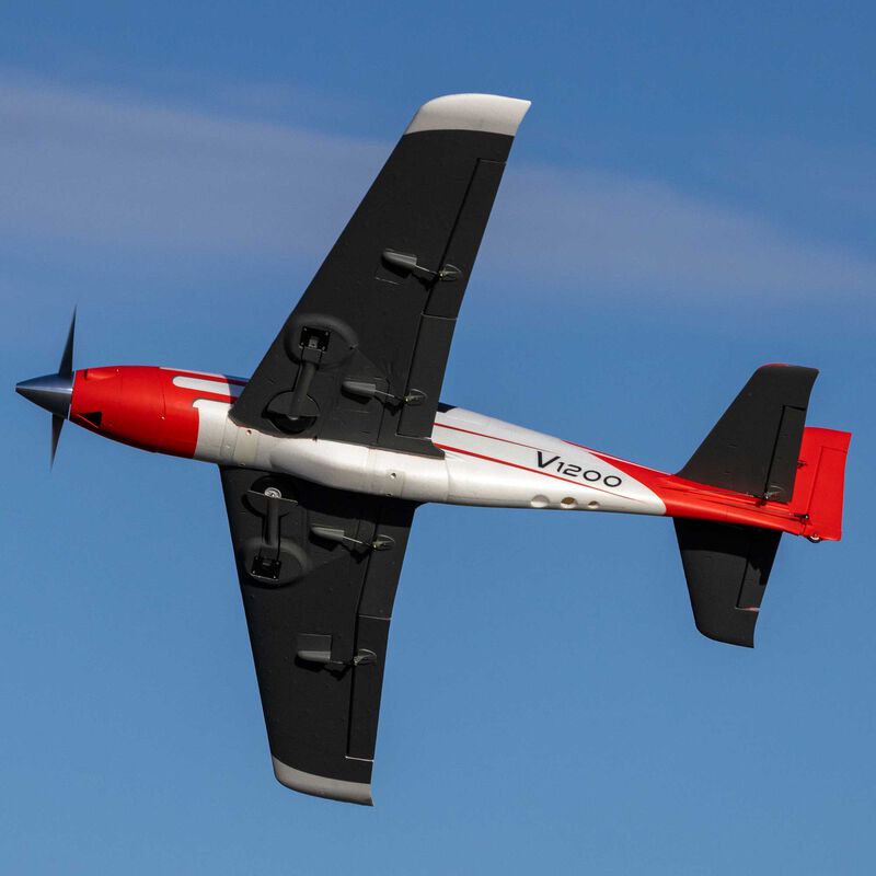 Speed and aerobatic enthusiasts will love the locked-in precision of the six digital, metal-geared servos and ball-link equipped linkages – especially when flying the BNF Basic version that's equipped with a factory-installed AR637TA+ receiver featuring enhanced AS3X+ and optional-use SAFE Select technologies. Operational flaps improve slow-flight performance and allow for shorter takeoffs and landings. The updated and upgraded, more durable and reliable retracts with sprung wire struts let you fly from paved, packed dirt, or shorter grass surfaces at any suitably sized fields. The sleek airframe is composite-reinforced throughout and is molded in higher-density EPO that delivers a stronger and stiffer airframe with a smoother, dent and damage-resistant surface. Plus, it's now factory-finished in a high-contrast trim scheme with a brighter color for improved visibility and orientation. No glue is required for assembly, and a total of six screws install the stabs, plus the one-piece wing that installs and removes easily for convenient storage and transport, thanks to hands-free connections. That means you can be ready to enjoy a flying experience unlike any other in less time than it takes to charge a battery. It's easier than ever to fly fast and look good doing it with the V1200!