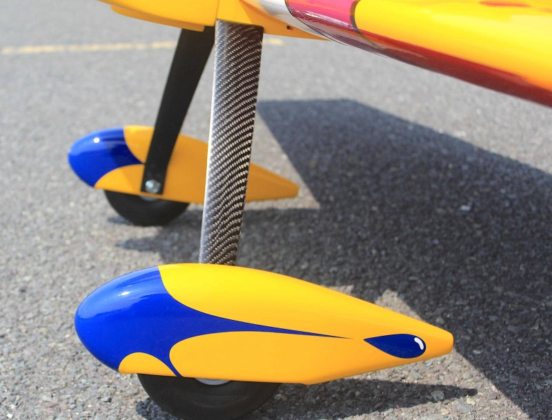 - Carbon-fiber main landing gear paired with robust 5″ PU rubber wheels designed to handle repeated landings on grass and pavement.