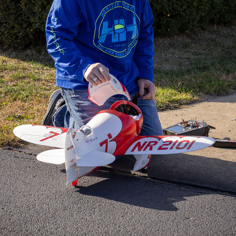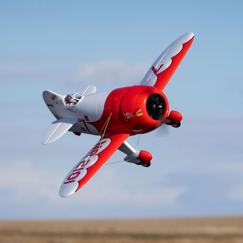 Gee Bee aircraft were among the pioneering racing airplanes that captivated just about everyone during aviation's Golden Age. Their cutting-edge, teardrop-shaped designs, coupled with small wings, required a skillful hand to fly well, but with the right pilot, they dominated the racecourse. The E-flite® Gee Bee R-2 1.0m is a faithful replica of the iconic aircraft, featuring an abundance of scale detail along with modern features and technologies to deliver an unmatched flying experience. It assembles quickly and is sized to be easily stored and transported without disassembly. The Bind-N-Fly® Basic version is equipped with enhanced AS3X+® technology that smooths out the effects of wind and turbulence like never before, plus optional-use SAFE® Select technology that makes it easier to fly. Both versions include Spektrum digital, metal-geared servos, a 70A Smart Lite ESC, and a 4S-compatible motor.